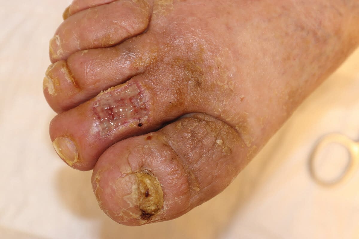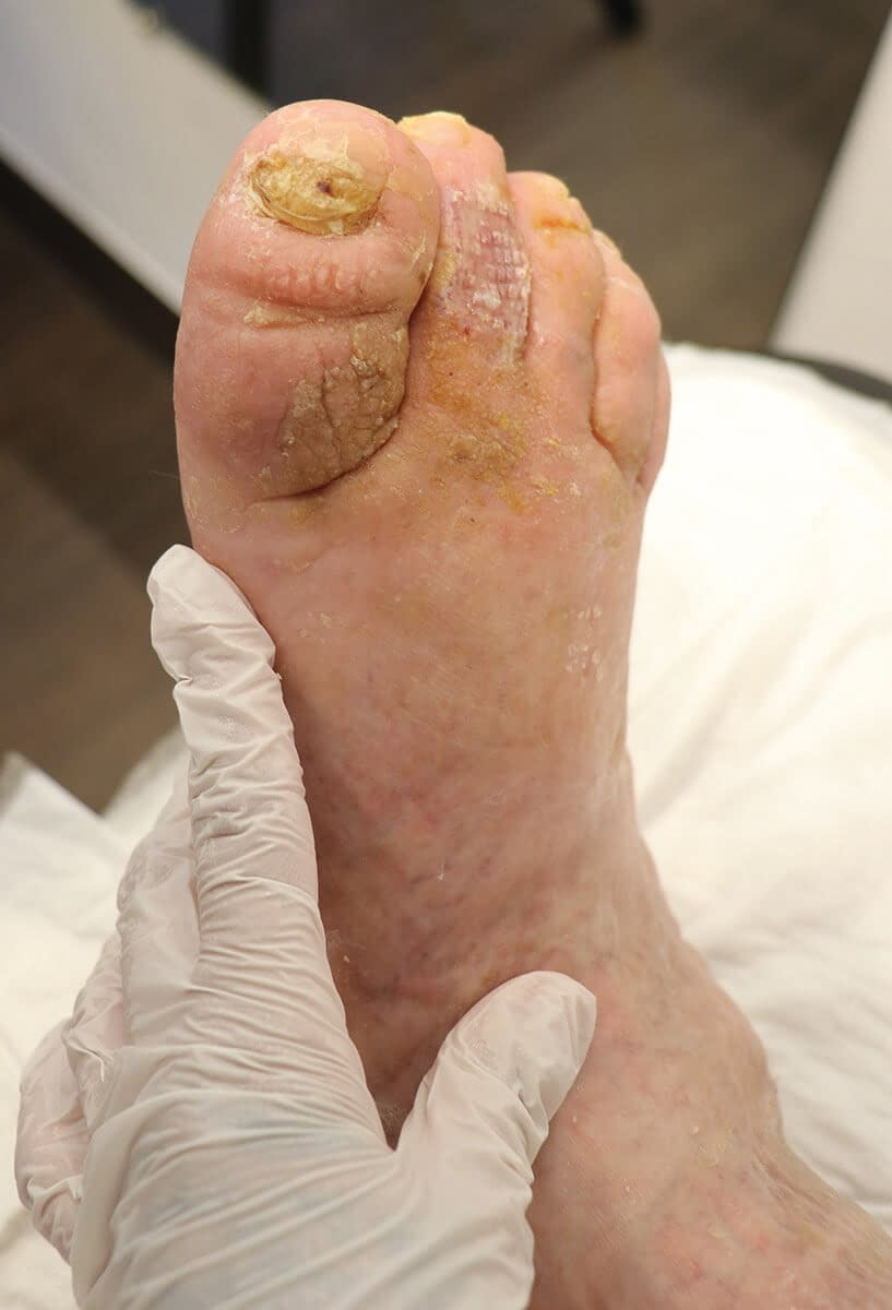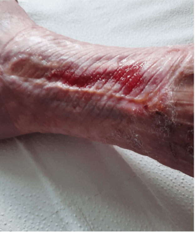Im Rahmen der ambulanten Weiterbehandlung kam es allerdings nun zu einer Verschlechterung der Wundsituation am Fuß.