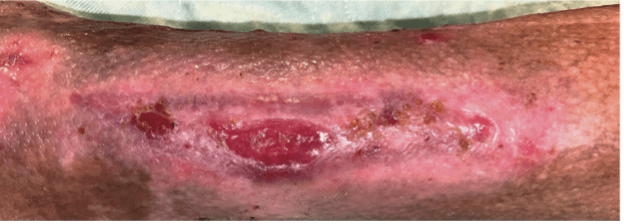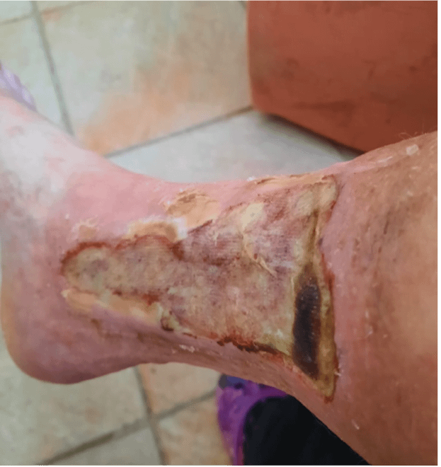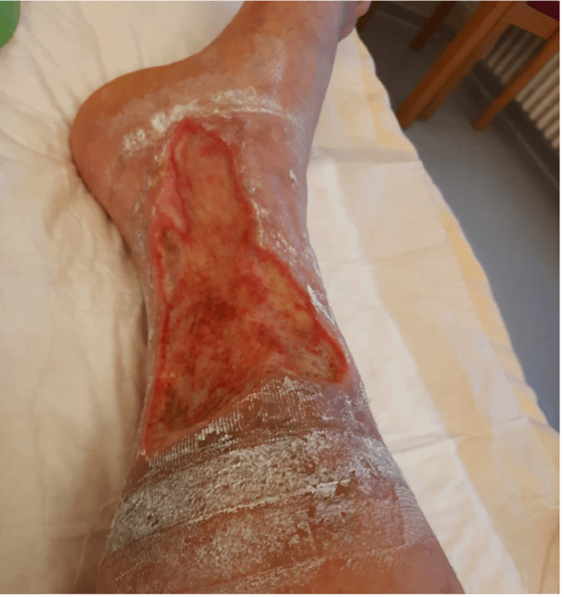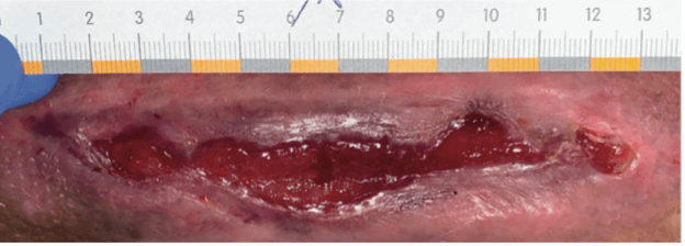 • Die Wunde wurde bis dahin bereits ca. 6 Jahre mit traditioneller/moderner Wundversorgung versorgt und es waren drei Hospitalisierungen notwendig.